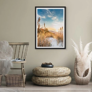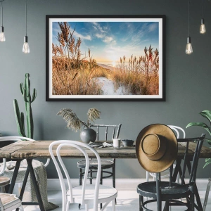 Poster in een zwarte lijst - Zonnig strandlandschap met grassen op de duinen - 50x70cm - Noord strand - Moderne wanddecoratie voor woonkamer en slaapkamer ARTTOR