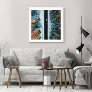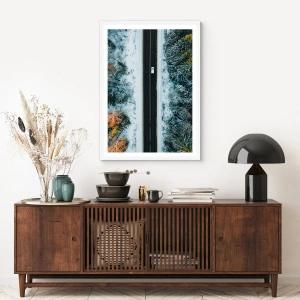 Poster in een witte lijst - Snijd door het winterbos - 30x30 cm