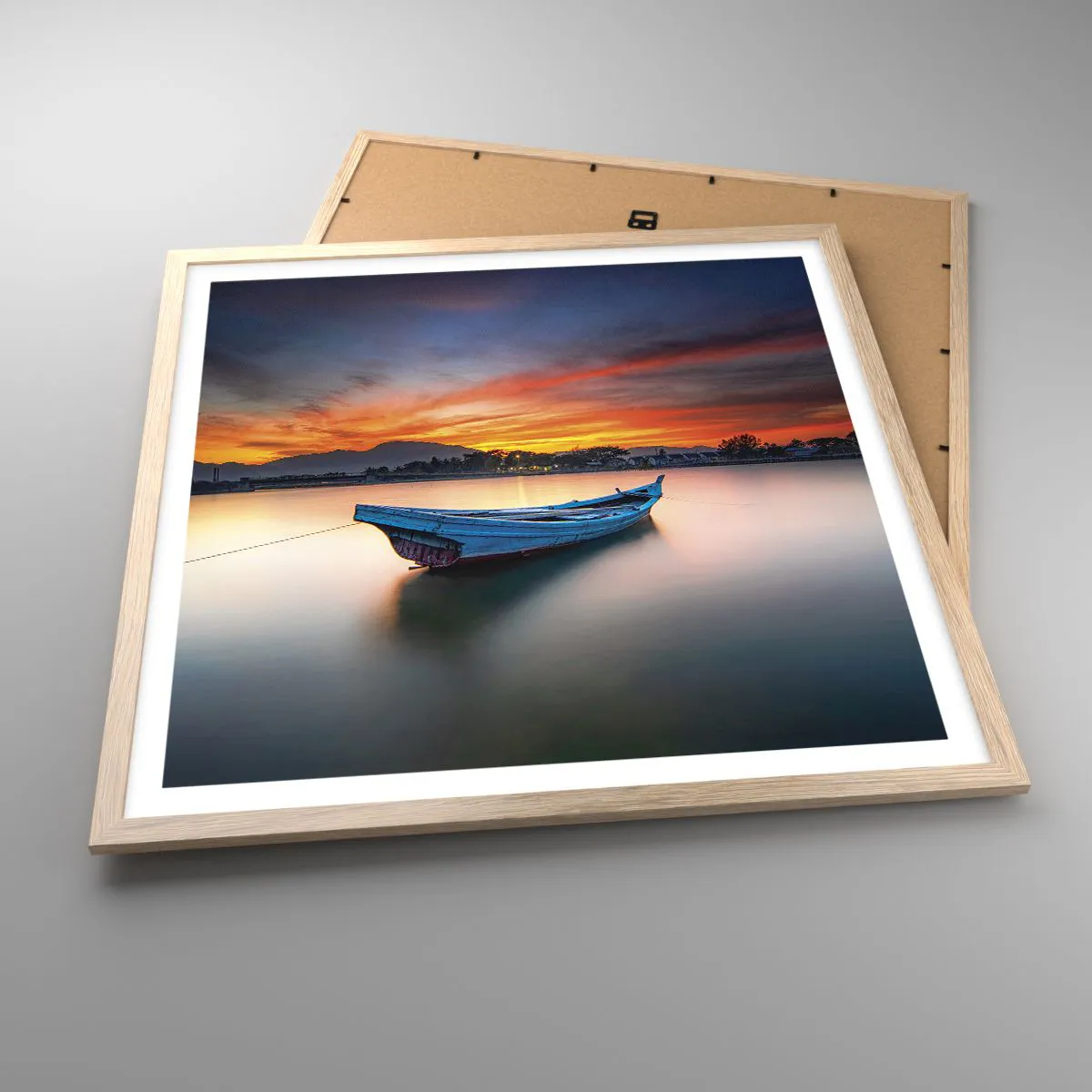 Een poster in een licht eiken lijst - Een goede nacht komt eraan - 60x60 cm