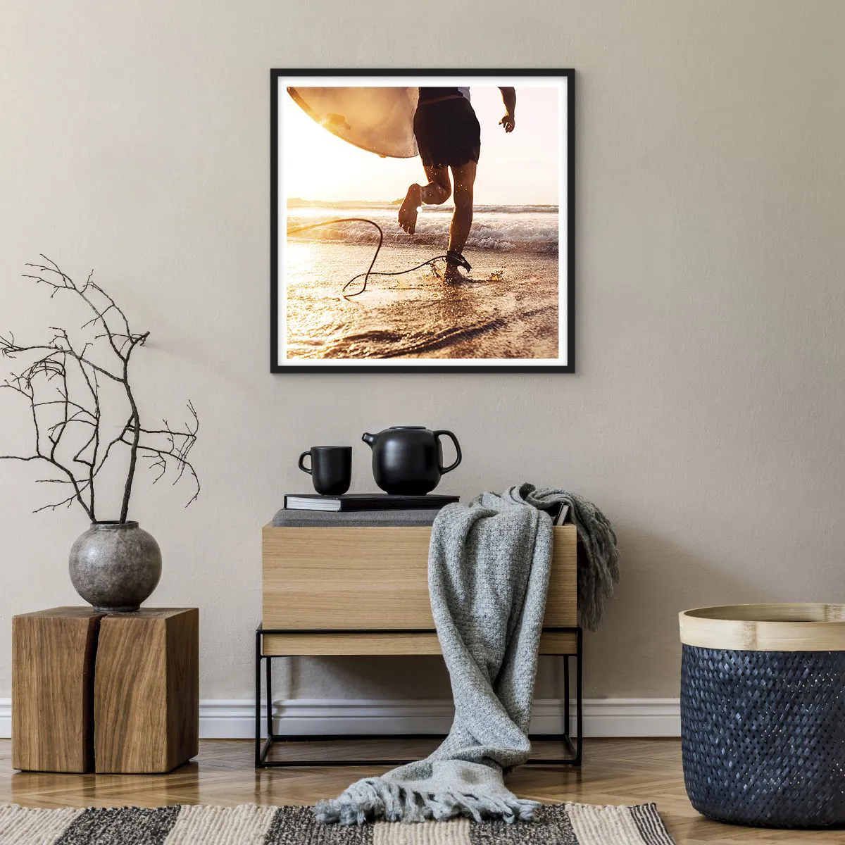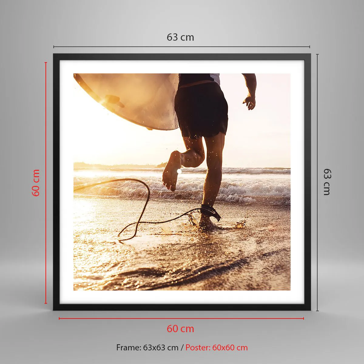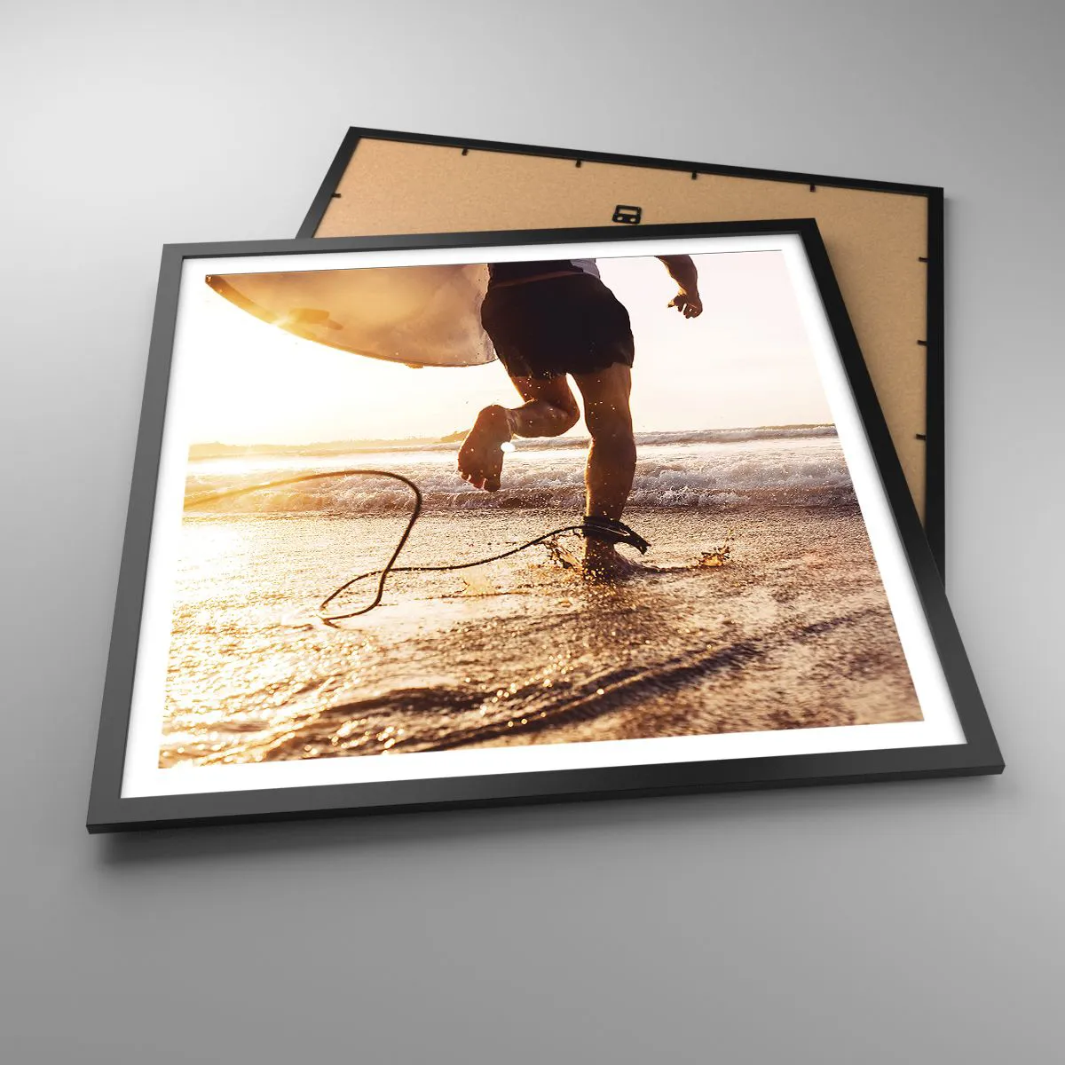 Poster in een zwarte lijst - Om de golf te ontmoeten - 60x60 cm