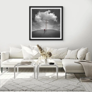 • Abstractie, ladder naar de hemel, lucht, Zwart en wit, mensen, Voor op kantoor, voor de studeerkamer, voor de eetkamer, voor de hal, voor de woonkamer, voor de slaapkamer, Grijs, zwart en wit, Horizontaal