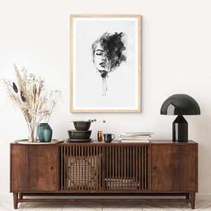Een poster in een licht eiken lijst - Waar droomt het meisje over? - 91x61 cm
