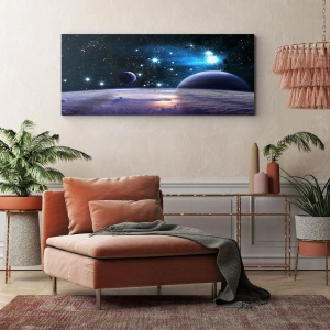 Het canvas wordt over het frame gespannen. De zijkanten en randen zijn bedrukt en zetten het beeld voort. De schilderij is klaar om aan de muur te hangen. Elk product heeft een hanger aan het frame en een montagekit (schroef + pin).