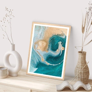 Een poster in een licht eiken lijst - Een werveling van goud en turkoois - 40x30 cm