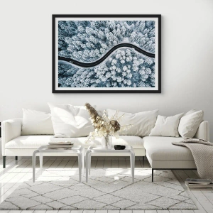 Poster in een zwarte lijst - Door het winterbos - 91x61 cm