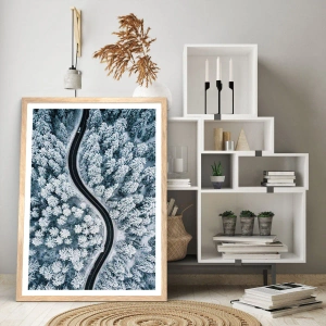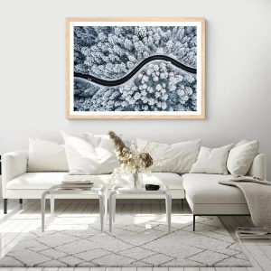 Een poster in een licht eiken lijst - Door het winterbos - 60x60 cm