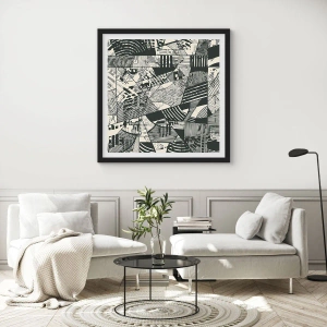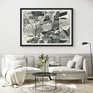 Poster in een zwarte lijst - Zwart-witte abstracte geometrische patronen - 50x70cm - De dynamiek van nu - Moderne wanddecoratie voor woonkamer en slaapkamer ARTTOR