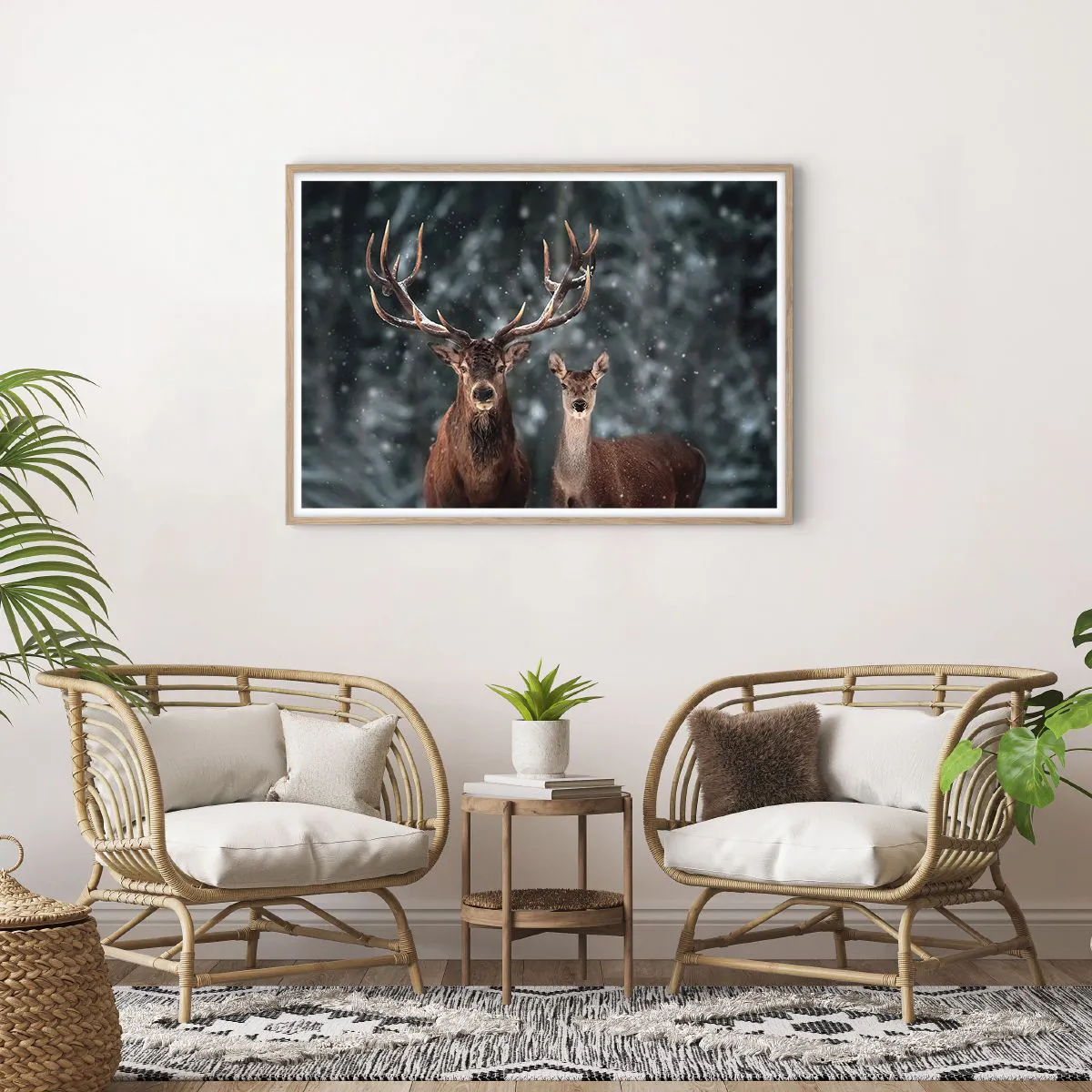 Een poster in een licht eiken lijst - Heer van het bos met zijn vrouw - 100x70 cm