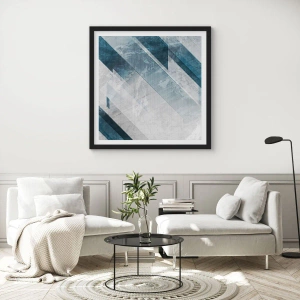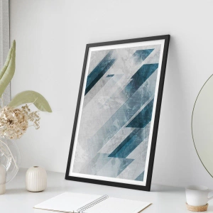 Poster in een zwarte lijst - Geometrie in tinten blauw en grijs - 50x70cm - Ruimtelijke compositie - grijze beweging - Moderne wanddecoratie voor woonkamer en slaapkamer ARTTOR