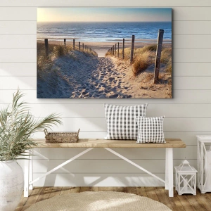 Schilderen op canvas - Het geluid van de zee, het zingen van vogels, een wild strand tussen het gras... - 60x60 cm