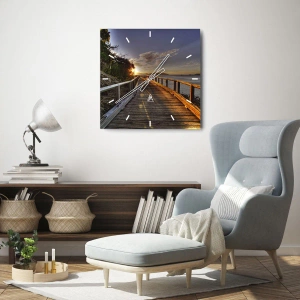Wandklok - Klok - Een steiger over het water bij zonsondergang - 30x30cm - Ga, blijf naar de zon gaan - Moderne wanddecoratie voor woonkamer, keuken en slaapkamer ARTTOR