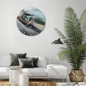 De klok is gemaakt van 4 mm dik gehard veiligheidsglas. De technologie van het maken van de klok voldoet aan de veiligheidsklasse 2B2 volgens de PN-EN 12600: 2004-norm, die weerstand tegen schokken garandeert. De klok op het glas is klaar om op te hangen - hij heeft een metalen hanger aan de achterkant van de klok en een schuimafstand die de even afstand tussen de klok en de muur regelt. De klok heeft een stil zwevend mechanisme dat wordt aangedreven door een batterij van 1,5 V - AA-batterij (batterij niet inbegrepen).