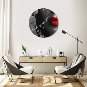 De klok is gemaakt van 4 mm dik gehard veiligheidsglas. De technologie van het maken van de klok voldoet aan de veiligheidsklasse 2B2 volgens de PN-EN 12600: 2004-norm, die weerstand tegen schokken garandeert. De klok op het glas is klaar om op te hangen - hij heeft een metalen hanger aan de achterkant van de klok en een schuimafstand die de even afstand tussen de klok en de muur regelt. De klok heeft een stil zwevend mechanisme dat wordt aangedreven door een batterij van 1,5 V - AA-batterij (batterij niet inbegrepen).