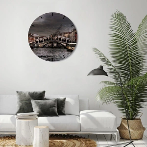 - Deze ronde wandklok toont een afbeelding van de Rialtobrug in Venetië onder een bewolkte hemel. Perfect voor liefhebbers van architectuur en Italiaanse flair. Gemaakt van glas, heeft hij een diameter van 30x30 cm.