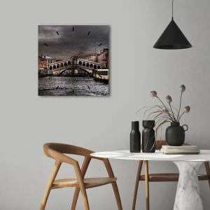 De wandklok "Rialtobrug in Venetië onder een bewolkte hemel" is een elegant accessoire dat de schoonheid van de Italiaanse architectuur en de unieke sfeer van Venetië vastlegt. Gemaakt van hoogwaardig glas, met een afmeting van 30x30 cm, combineert hij esthetiek en functionaliteit.