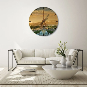 Wandklok - Koningin van Parijs - Uitzicht op de Eiffeltoren bij zonsondergang