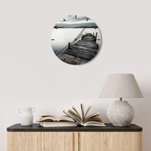 De klok is gemaakt van 4 mm dik gehard veiligheidsglas. De technologie van het maken van de klok voldoet aan de veiligheidsklasse 2B2 volgens de PN-EN 12600: 2004-norm, die weerstand tegen schokken garandeert. De klok op het glas is klaar om op te hangen - hij heeft een metalen hanger aan de achterkant van de klok en een schuimafstand die de even afstand tussen de klok en de muur regelt. De klok heeft een stil zwevend mechanisme dat wordt aangedreven door een batterij van 1,5 V - AA-batterij (batterij niet inbegrepen).