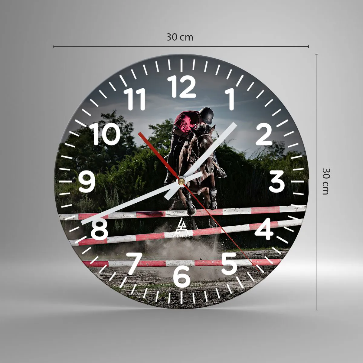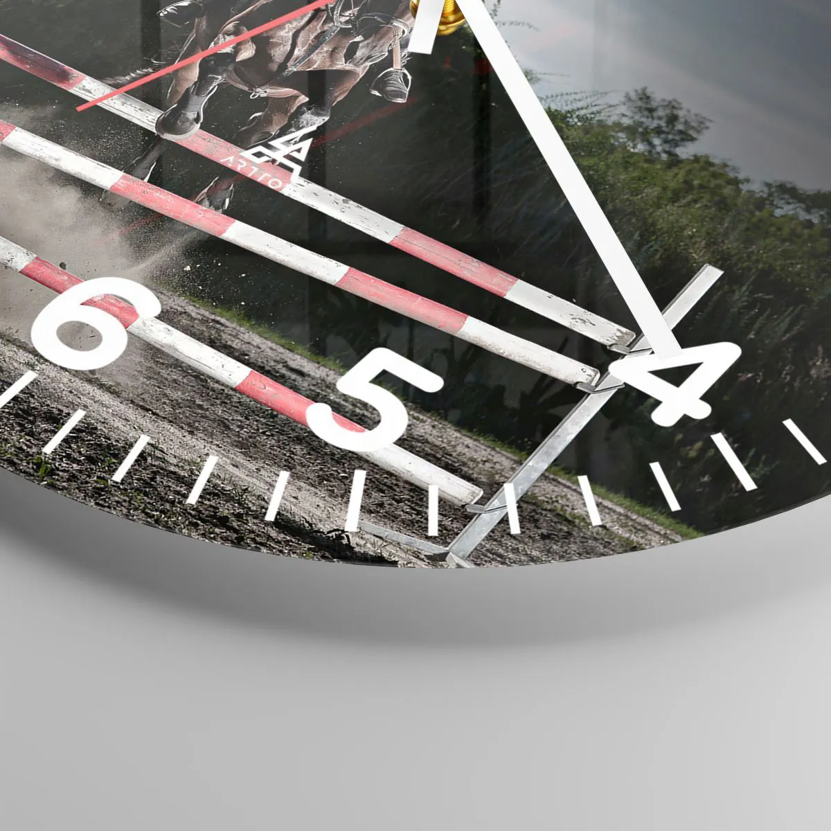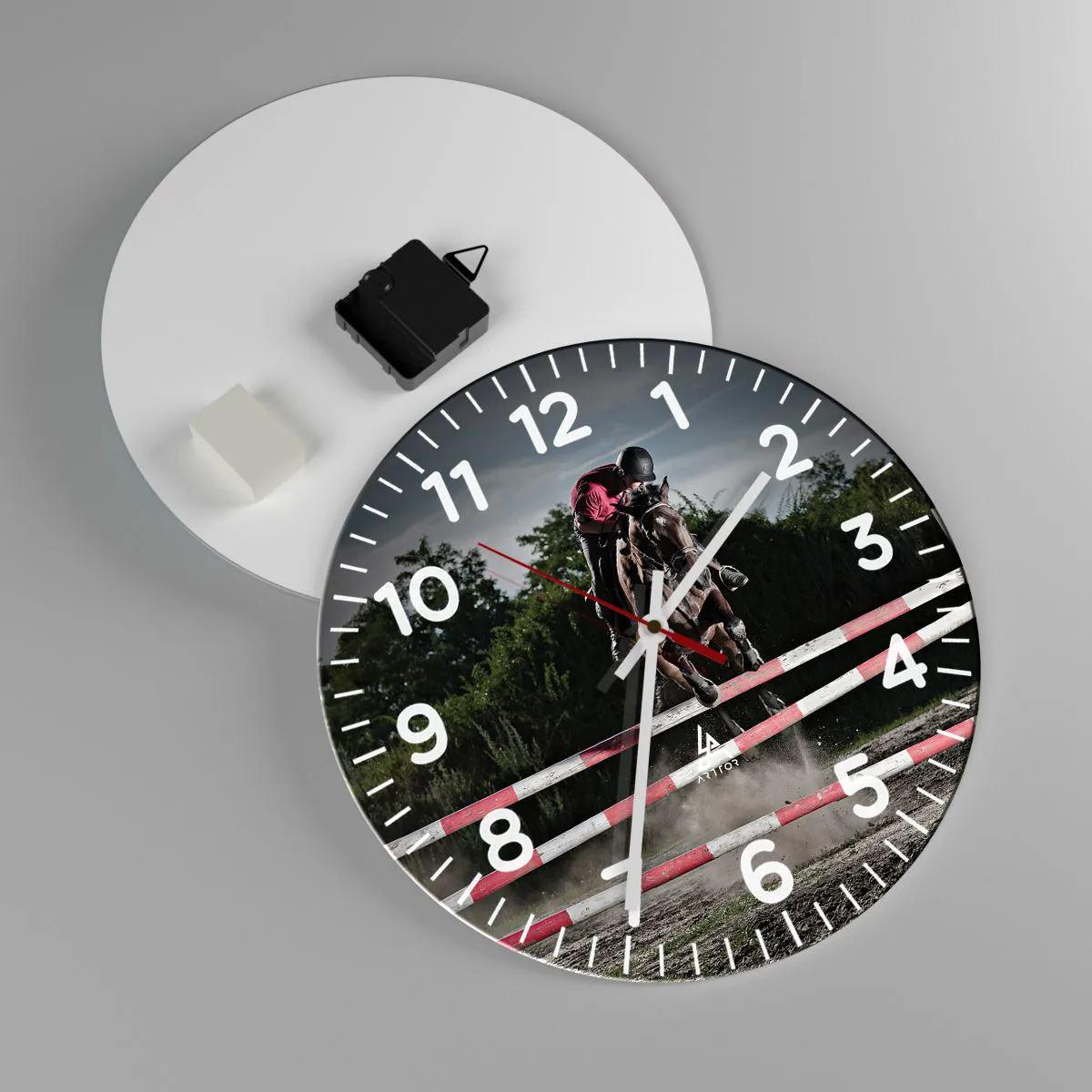 De klok is gemaakt van 4 mm dik gehard veiligheidsglas. De technologie van het maken van de klok voldoet aan de veiligheidsklasse 2B2 volgens de PN-EN 12600: 2004-norm, die weerstand tegen schokken garandeert. De klok op het glas is klaar om op te hangen - hij heeft een metalen hanger aan de achterkant van de klok en een schuimafstand die de even afstand tussen de klok en de muur regelt. De klok heeft een stil zwevend mechanisme dat wordt aangedreven door een batterij van 1,5 V - AA-batterij (batterij niet inbegrepen).