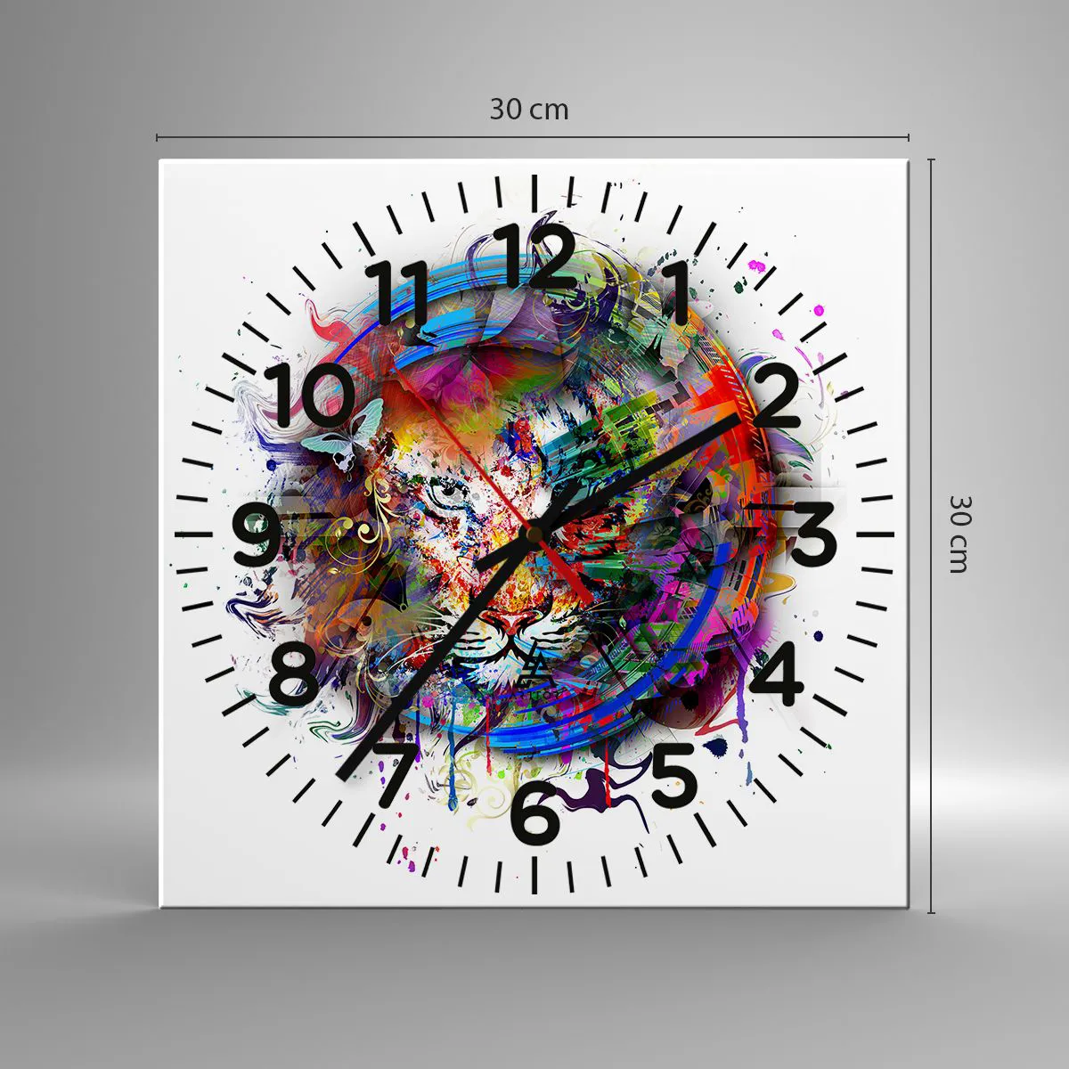 De klok is gemaakt met behulp van moderne printtechnologieën die het behoud van natuurlijke kleuren en een hoge kleurverzadiging garanderen. De productie van klokken op glas gebeurt in verschillende fasen. Hoogwaardige afdruk en twee beschermlagen zijn thermisch op het glas gelijmd. Hiervoor gebruiken we de innovatieve technologie van glaslamineerovens in een vacuümomgeving.