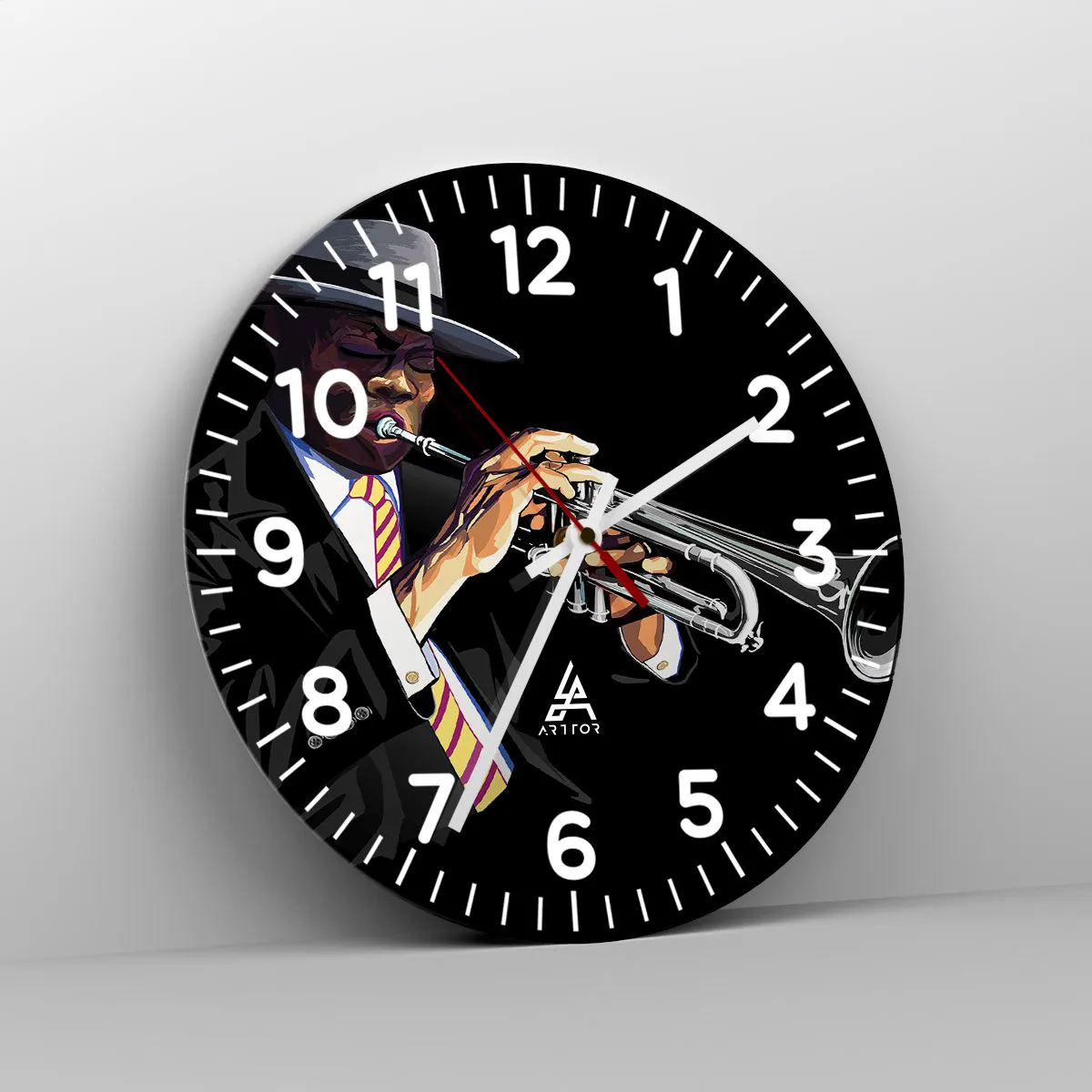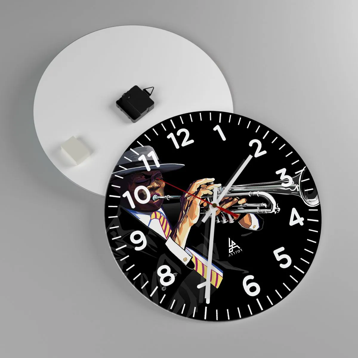 • Muziek, Jazz, Trompet, Mensen, muziek, Voor op kantoor, voor de studeerkamer, voor de eetkamer, voor de hal, voor de woonkamer, voor de slaapkamer, Zwart, Ronde