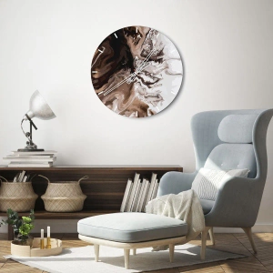 De klok is gemaakt van 4 mm dik gehard veiligheidsglas. De technologie van het maken van de klok voldoet aan de veiligheidsklasse 2B2 volgens de PN-EN 12600: 2004-norm, die weerstand tegen schokken garandeert. De klok op het glas is klaar om op te hangen - hij heeft een metalen hanger aan de achterkant van de klok en een schuimafstand die de even afstand tussen de klok en de muur regelt. De klok heeft een stil zwevend mechanisme dat wordt aangedreven door een batterij van 1,5 V - AA-batterij (batterij niet inbegrepen).