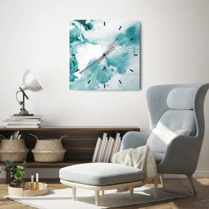 De klok is gemaakt van 4 mm dik gehard veiligheidsglas. De technologie van het maken van de klok voldoet aan de veiligheidsklasse 2B2 volgens de PN-EN 12600: 2004-norm, die weerstand tegen schokken garandeert. De klok op het glas is klaar om op te hangen - hij heeft een metalen hanger aan de achterkant van de klok en een schuimafstand die de even afstand tussen de klok en de muur regelt. De klok heeft een stil zwevend mechanisme dat wordt aangedreven door een batterij van 1,5 V - AA-batterij (batterij niet inbegrepen).