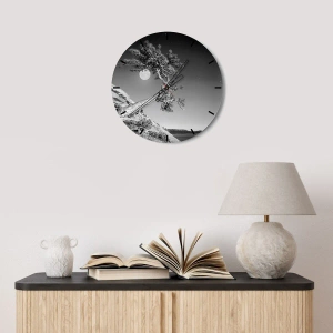 De klok is gemaakt van 4 mm dik gehard veiligheidsglas. De technologie van het maken van de klok voldoet aan de veiligheidsklasse 2B2 volgens de PN-EN 12600: 2004-norm, die weerstand tegen schokken garandeert. De klok op het glas is klaar om op te hangen - hij heeft een metalen hanger aan de achterkant van de klok en een schuimafstand die de even afstand tussen de klok en de muur regelt. De klok heeft een stil zwevend mechanisme dat wordt aangedreven door een batterij van 1,5 V - AA-batterij (batterij niet inbegrepen).