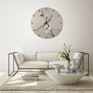 De klok is gemaakt van 4 mm dik gehard veiligheidsglas. De technologie van het maken van de klok voldoet aan de veiligheidsklasse 2B2 volgens de PN-EN 12600: 2004-norm, die weerstand tegen schokken garandeert. De klok op het glas is klaar om op te hangen - hij heeft een metalen hanger aan de achterkant van de klok en een schuimafstand die de even afstand tussen de klok en de muur regelt. De klok heeft een stil zwevend mechanisme dat wordt aangedreven door een batterij van 1,5 V - AA-batterij (batterij niet inbegrepen).