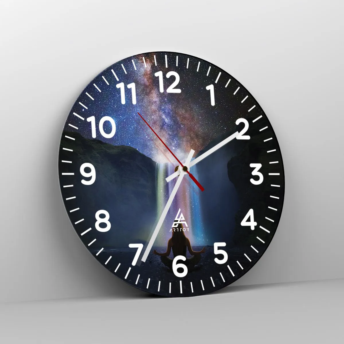 De klok is gemaakt met behulp van moderne printtechnologieën die het behoud van natuurlijke kleuren en een hoge kleurverzadiging garanderen. De productie van klokken op glas gebeurt in verschillende fasen. Hoogwaardige afdruk en twee beschermlagen zijn thermisch op het glas gelijmd. Hiervoor gebruiken we de innovatieve technologie van glaslamineerovens in een vacuümomgeving.
