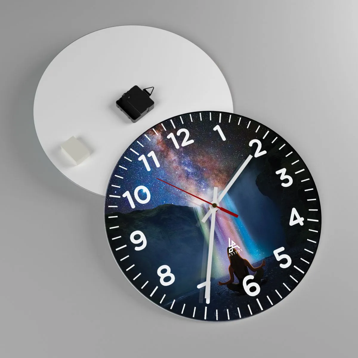 De klok is gemaakt van 4 mm dik gehard veiligheidsglas. De technologie van het maken van de klok voldoet aan de veiligheidsklasse 2B2 volgens de PN-EN 12600: 2004-norm, die weerstand tegen schokken garandeert. De klok op het glas is klaar om op te hangen - hij heeft een metalen hanger aan de achterkant van de klok en een schuimafstand die de even afstand tussen de klok en de muur regelt. De klok heeft een stil zwevend mechanisme dat wordt aangedreven door een batterij van 1,5 V - AA-batterij (batterij niet inbegrepen).