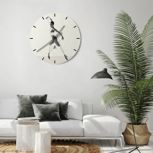 De klok is gemaakt van 4 mm dik gehard veiligheidsglas. De technologie van het maken van de klok voldoet aan de veiligheidsklasse 2B2 volgens de PN-EN 12600: 2004-norm, die weerstand tegen schokken garandeert. De klok op het glas is klaar om op te hangen - hij heeft een metalen hanger aan de achterkant van de klok en een schuimafstand die de even afstand tussen de klok en de muur regelt. De klok heeft een stil zwevend mechanisme dat wordt aangedreven door een batterij van 1,5 V - AA-batterij (batterij niet inbegrepen).