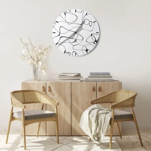 De klok is gemaakt van 4 mm dik gehard veiligheidsglas. De technologie van het maken van de klok voldoet aan de veiligheidsklasse 2B2 volgens de PN-EN 12600: 2004-norm, die weerstand tegen schokken garandeert. De klok op het glas is klaar om op te hangen - hij heeft een metalen hanger aan de achterkant van de klok en een schuimafstand die de even afstand tussen de klok en de muur regelt. De klok heeft een stil zwevend mechanisme dat wordt aangedreven door een batterij van 1,5 V - AA-batterij (batterij niet inbegrepen).