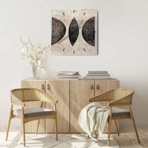 De klok is gemaakt van 4 mm dik gehard veiligheidsglas. De technologie van het maken van de klok voldoet aan de veiligheidsklasse 2B2 volgens de PN-EN 12600: 2004-norm, die weerstand tegen schokken garandeert. De klok op het glas is klaar om op te hangen - hij heeft een metalen hanger aan de achterkant van de klok en een schuimafstand die de even afstand tussen de klok en de muur regelt. De klok heeft een stil zwevend mechanisme dat wordt aangedreven door een batterij van 1,5 V - AA-batterij (batterij niet inbegrepen).