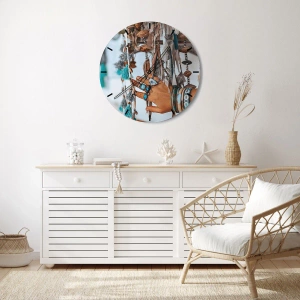 De klok is gemaakt van 4 mm dik gehard veiligheidsglas. De technologie van het maken van de klok voldoet aan de veiligheidsklasse 2B2 volgens de PN-EN 12600: 2004-norm, die weerstand tegen schokken garandeert. De klok op het glas is klaar om op te hangen - hij heeft een metalen hanger aan de achterkant van de klok en een schuimafstand die de even afstand tussen de klok en de muur regelt. De klok heeft een stil zwevend mechanisme dat wordt aangedreven door een batterij van 1,5 V - AA-batterij (batterij niet inbegrepen).