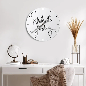 De klok is gemaakt van 4 mm dik gehard veiligheidsglas. De technologie van het maken van de klok voldoet aan de veiligheidsklasse 2B2 volgens de PN-EN 12600: 2004-norm, die weerstand tegen schokken garandeert. De klok op het glas is klaar om op te hangen - hij heeft een metalen hanger aan de achterkant van de klok en een schuimafstand die de even afstand tussen de klok en de muur regelt. De klok heeft een stil zwevend mechanisme dat wordt aangedreven door een batterij van 1,5 V - AA-batterij (batterij niet inbegrepen).