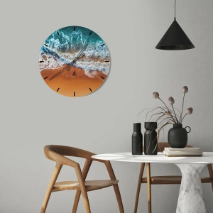 De klok is gemaakt van 4 mm dik gehard veiligheidsglas. De technologie van het maken van de klok voldoet aan de veiligheidsklasse 2B2 volgens de PN-EN 12600: 2004-norm, die weerstand tegen schokken garandeert. De klok op het glas is klaar om op te hangen - hij heeft een metalen hanger aan de achterkant van de klok en een schuimafstand die de even afstand tussen de klok en de muur regelt. De klok heeft een stil zwevend mechanisme dat wordt aangedreven door een batterij van 1,5 V - AA-batterij (batterij niet inbegrepen).