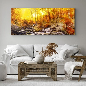 Dit schilderij is perfect als decoratief element in een woonkamer, slaapkamer of ontspanningsruimte en brengt warmte en harmonie in het interieur. De kleuren, geïnspireerd door de herfstnatuur, passen perfect bij rustieke, moderne en klassieke stijlen. Het herfstbosmotief is universeel en tijdloos, waardoor het perfect past bij diverse arrangementen.