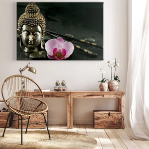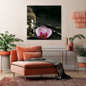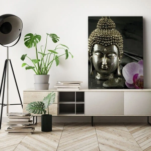 • Boeddha, religie, geloof, Cultuur, bloemen, Voor op kantoor, voor de studeerkamer, voor de eetkamer, voor de badkamer, voor de hal, voor de woonkamer, voor de slaapkamer, Zwart, roze, goud, Verticaal