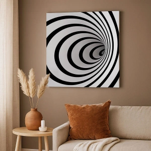 Het canvas wordt over het frame gespannen. De zijkanten en randen zijn bedrukt en zetten het beeld voort. De schilderij is klaar om aan de muur te hangen. Elk product heeft een hanger aan het frame en een montagekit (schroef + pin).