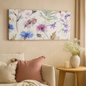 Schilderen op canvas - Aquarelbloemen en kruiden op een witte achtergrond in herbariumstijl - 70x50cm - Pools herbarium - Moderne wanddecoratie voor woonkamer en slaapkamer ARTTOR