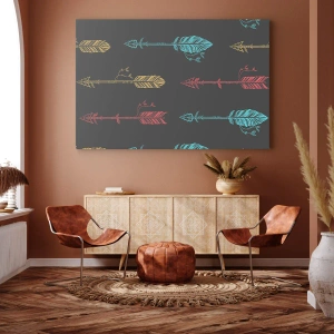 Het canvas wordt over het frame gespannen. De zijkanten en randen zijn bedrukt en zetten het beeld voort. De schilderij is klaar om aan de muur te hangen. Elk product heeft een hanger aan het frame en een montagekit (schroef + pin).