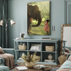 Het canvas wordt over het frame gespannen. De zijkanten en randen zijn bedrukt en zetten het beeld voort. De schilderij is klaar om aan de muur te hangen. Elk product heeft een hanger aan het frame en een montagekit (schroef + pin).
