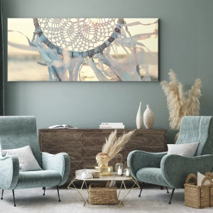 Het canvas wordt over het frame gespannen. De zijkanten en randen zijn bedrukt en zetten het beeld voort. De schilderij is klaar om aan de muur te hangen. Elk product heeft een hanger aan het frame en een montagekit (schroef + pin).