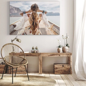 Het canvas wordt over het frame gespannen. De zijkanten en randen zijn bedrukt en zetten het beeld voort. De schilderij is klaar om aan de muur te hangen. Elk product heeft een hanger aan het frame en een montagekit (schroef + pin).