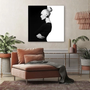 Het zwart-witte motief van het schilderij staat symbool voor eenvoud en harmonie. De vrouw op het canvas straalt rust en zelfvertrouwen uit, waardoor dit schilderij een uitstekende keuze is voor liefhebbers van moderne kunst. Subtiele details en een hoogwaardige canvasprint maken dit schilderij tot een blikvanger in elke kamer.