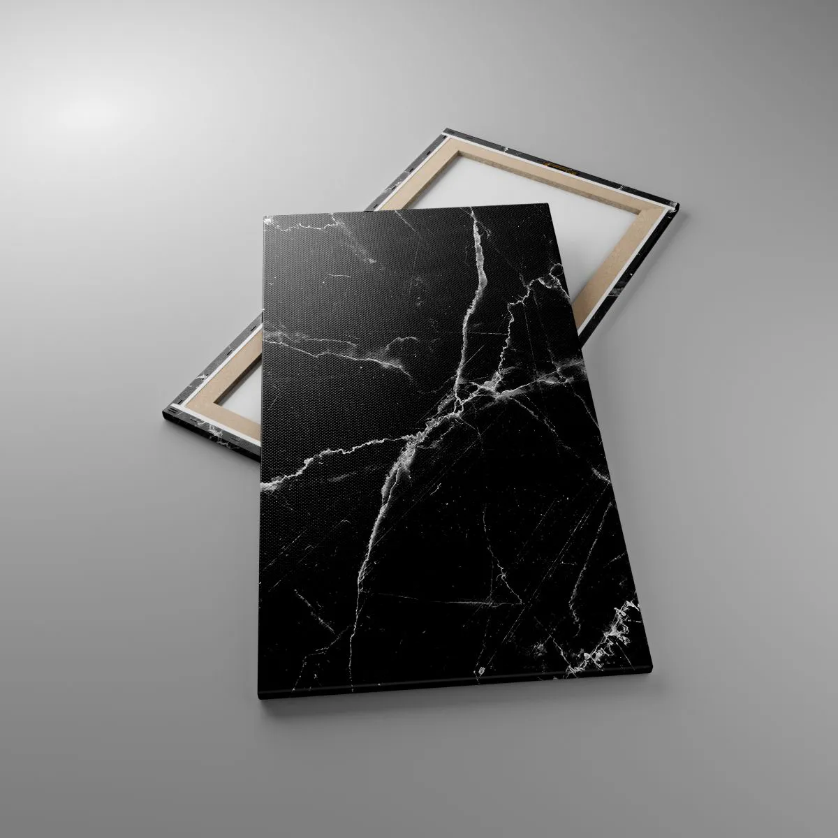 Het canvas wordt over het frame gespannen. De zijkanten en randen zijn bedrukt en zetten het beeld voort. De schilderij is klaar om aan de muur te hangen. Elk product heeft een hanger aan het frame en een montagekit (schroef + pin).