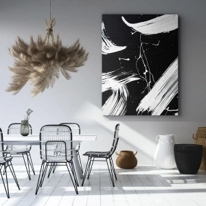 Breaking the Darkness is een modern schilderij van 70x50 cm, gemaakt op hoogwaardig canvas van ARTTOR. Het hoofdmotief van deze decoratie zijn abstracte witte verfstreken op een diepzwarte achtergrond, wat de compositie een uitzonderlijke dynamiek en expressiviteit geeft. Monochromatische kleuren gecombineerd met eenvoudige vormen maken het schilderij perfect passend bij de minimalistische en moderne stijl en vormt het een uniek accent in elk interieur.
