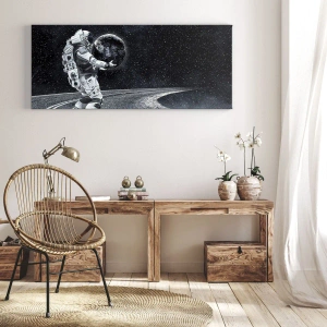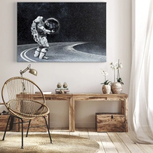 Het canvas wordt over het frame gespannen. De zijkanten en randen zijn bedrukt en zetten het beeld voort. De schilderij is klaar om aan de muur te hangen. Elk product heeft een hanger aan het frame en een montagekit (schroef + pin).
