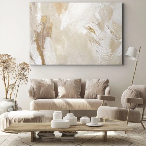 De canvasprint "Pastel Compositie" is een aanrader voor liefhebbers van subtiele, elegante decoraties. De compositie in neutrale kleuren, die delicate beige tinten combineert met luxueuze gouden accenten, creëert een harmonieus en verfijnd geheel.