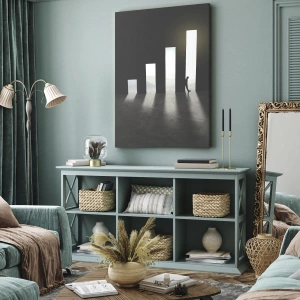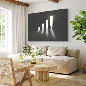 Het canvas wordt over het frame gespannen. De zijkanten en randen zijn bedrukt en zetten het beeld voort. De schilderij is klaar om aan de muur te hangen. Elk product heeft een hanger aan het frame en een montagekit (schroef + pin).